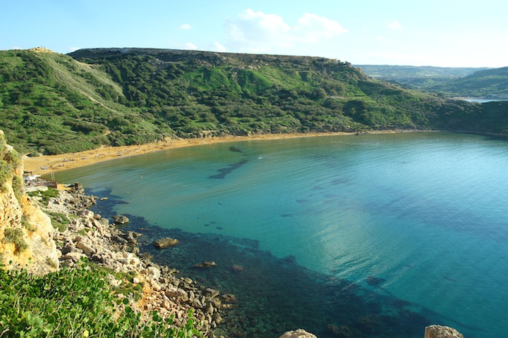 This is another magnificent ‘twin’ bay in the north of Malta, adjacent to similarly popular Golden Bay. Thankfully this has not been spoilt by over-building and still retains a remote element about it. The Maltese word ‘ghajn’ means water-well or water font, and the word ‘tuffieha’ is an apple and therefore Font of Apples.