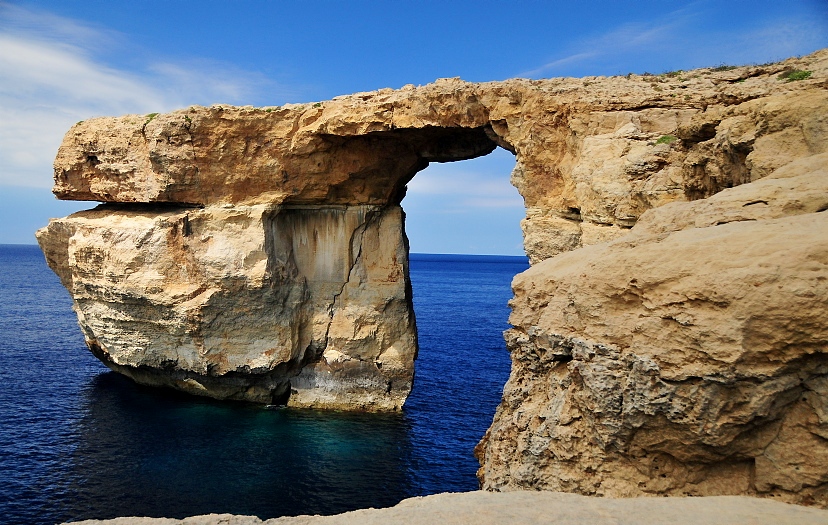 Lost and gone forever. This was a romantic natural rock window in the north of Gozo that sadly but slowly and surely was in a continual state of collapse because of the soft base rock and its entire exposure to the winds and seas of ravages during storms. Tourists and visitors had over generations trampled overhead, causing even more damage although this was prohibited and subject to severe fines. It was classified by UNESCO as one of the natural wonders of the world.