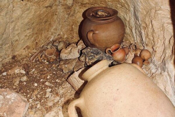 Over the coming weeks the find was monitored and investigated. A second tomb included funerary pots containing burnt human bones and the pots were covered by plates. There was also a trefoil jug, an oil lamp and other related items.