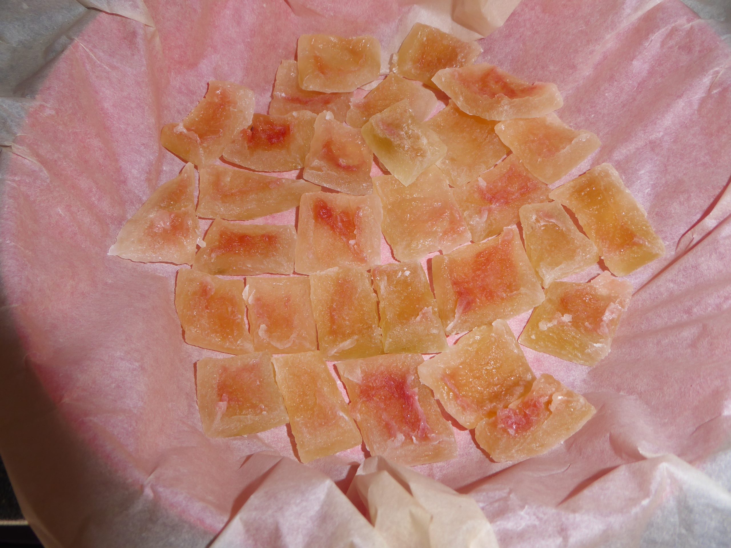 It’s as good as any expensive candied fruit and it’s a very attractive colour. It also makes an unusual present if you put some of the sweets in a fancy box.