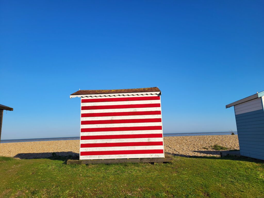 Railway expansion in the 1840s made the seaside affordable and accessible to everyday folk and today a trip to the seaside in the ultimate British day out. I was delighted to take a trip to Romney Marshes and visit the beach hut development that is taking place on Coast Drive, Greatstone. Following on from the success of a beach hut project in Folkstone, the district council have a ninety-three brand new beach huts that they will be citing along Coast Drive. I saw the new beach huts with their uniformed paint, neat and pretty pitched roofs and I can see their appeal, but I prefer the rustic eccentricity of the older huts that are characterised by many seasons of sea air and wind, hand painted and full of love and the memories of happy days.