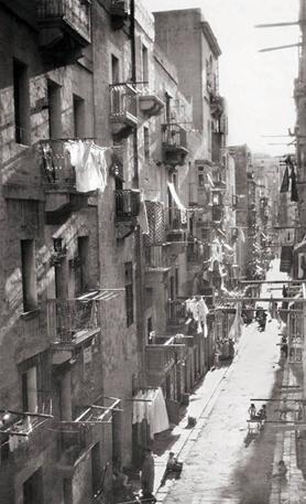 The buildings were mostly slum tenements without running water or internal sanitary facilities. Four fountains in different areas supplied running water which had to be carried to homes. Sanitary facilities were external troughs and the whole environment was one of stench and filth.