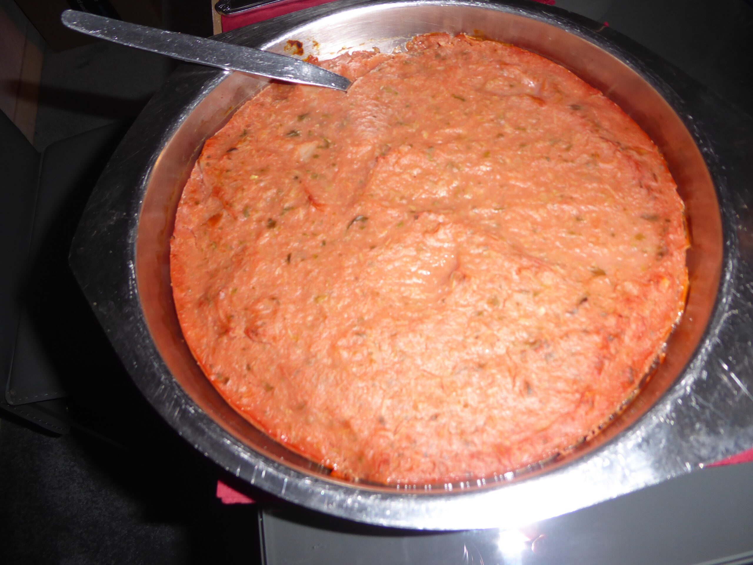 I liquidised it again until smooth. Then I tipped it into a baking dish and baked it for half an hour.