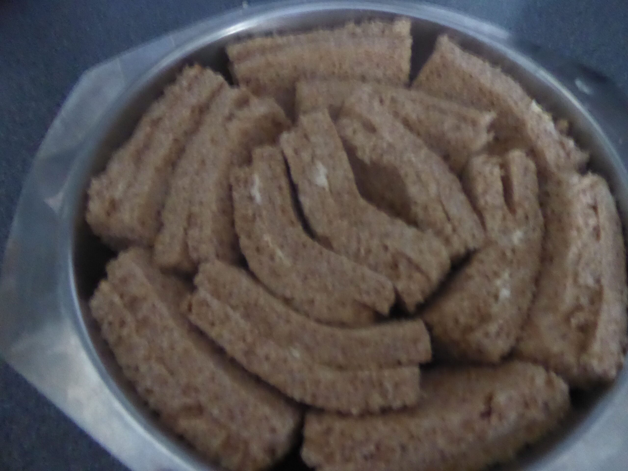Press them together & arrange them in a round baking dish, open side upright, pushing them together & filling the dish.