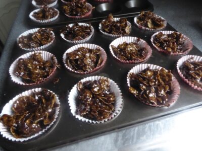 Place the cornflake cakes in the fridge to set and harden.