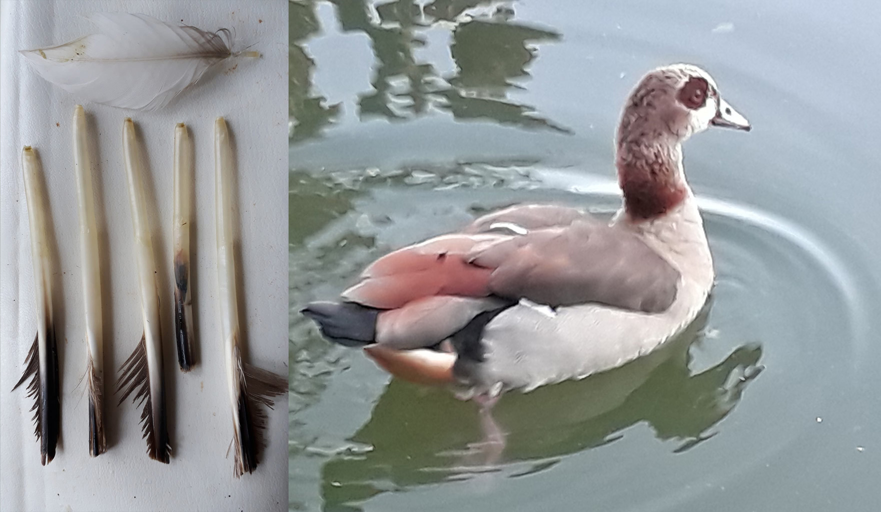 In November 2021 an Egyptian goose suddenly appeared by the pool after a very severe storm.