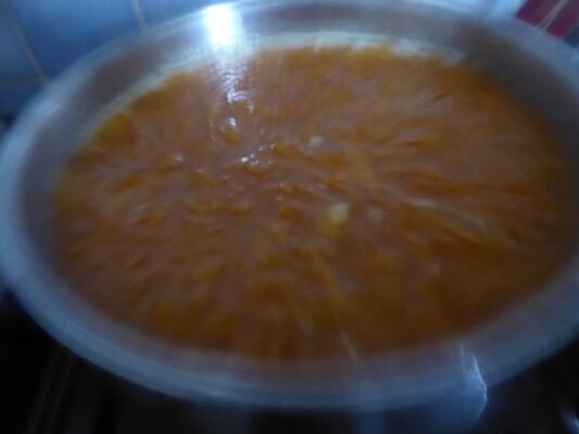 Dissolve the sugar in water. Bring to the boil.