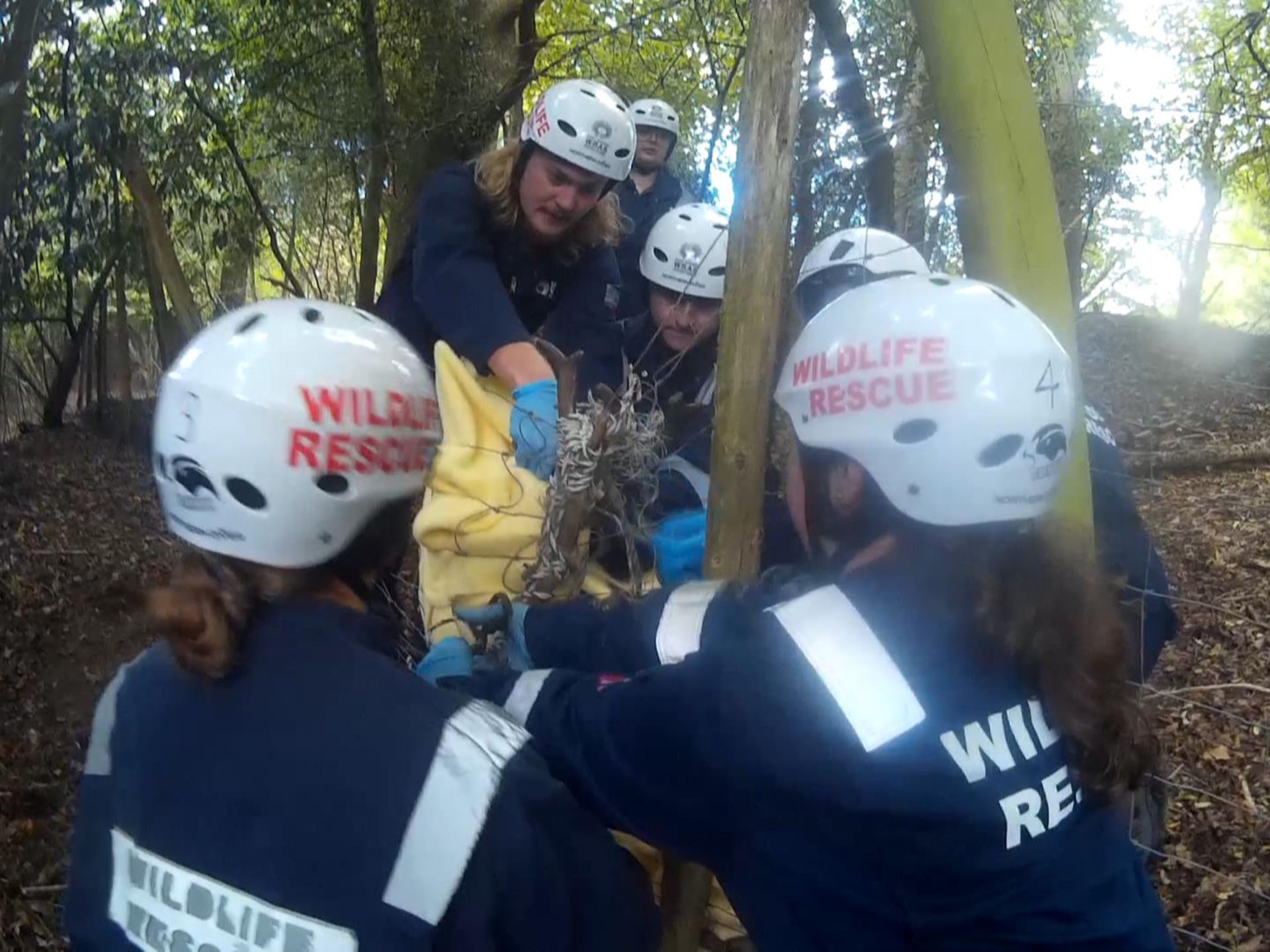 “Deer rescues are never easy and can be dangerous. When two are tied together, they are far harder to deal with and a bigger team is needed for safety and speed,” explained Trevor Weeks MBE, founder of East Sussex WRAS and lead deer rescuer.